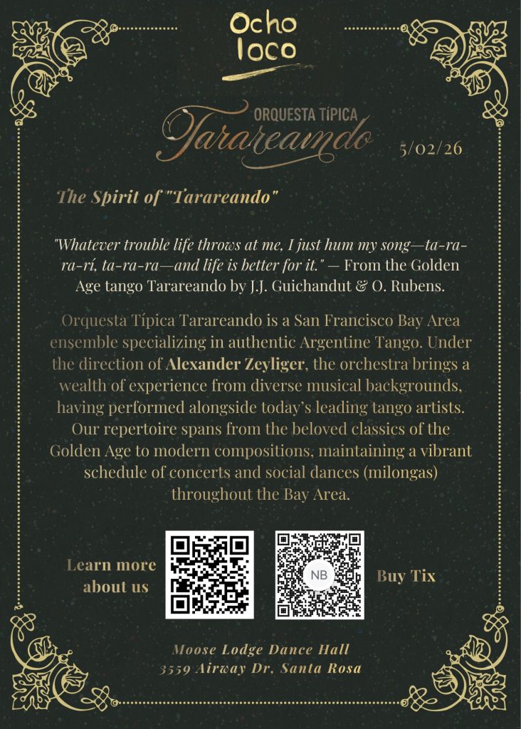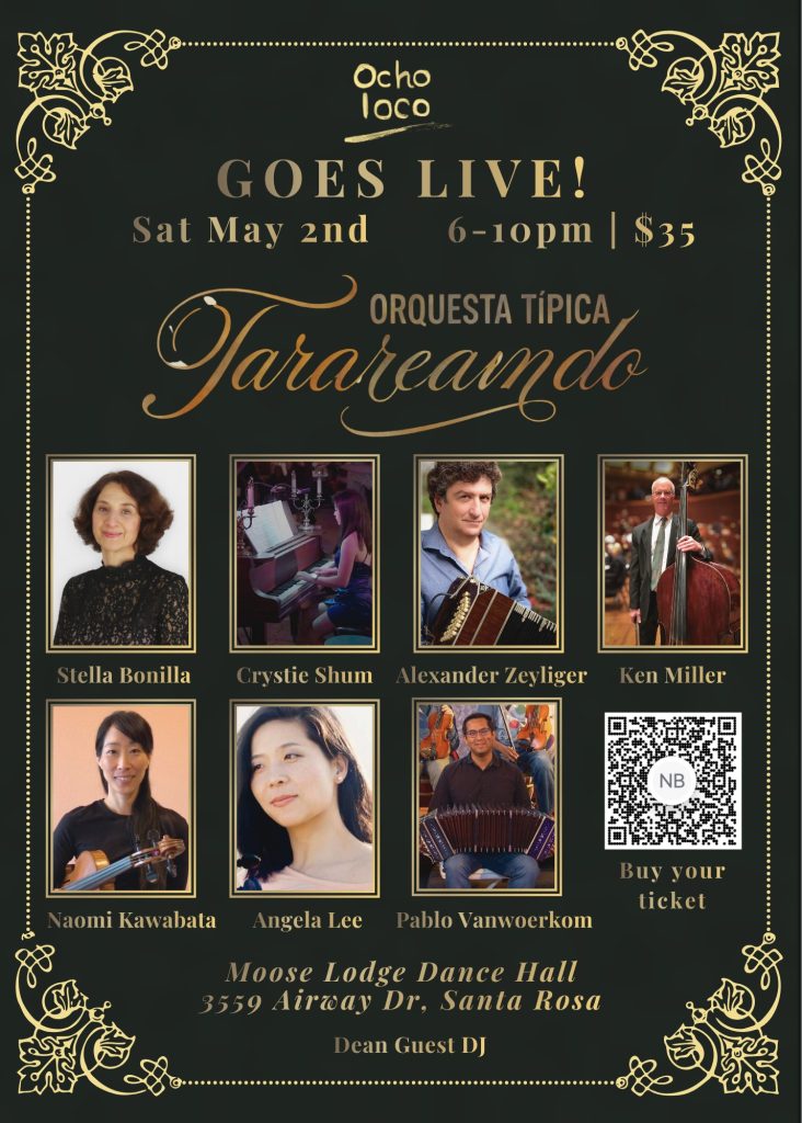 May 2nd, 2026 6 – 10 PM – Ocho Loco Live Orchestra Milonga $35